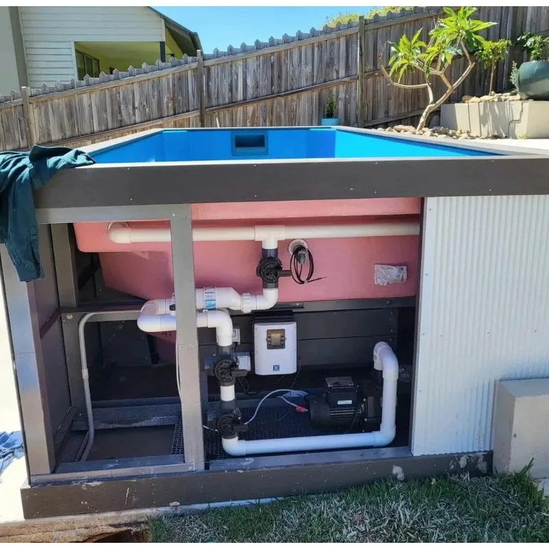 Fabricada com materiais de alta qualidade, a estrutura em fibra de vidro reforçada (FRP) garante resistência, impermeabilidade e longa durabilidade.